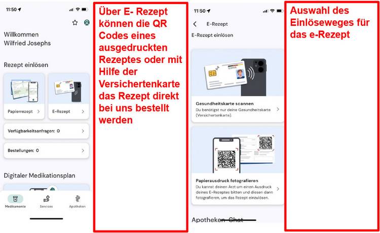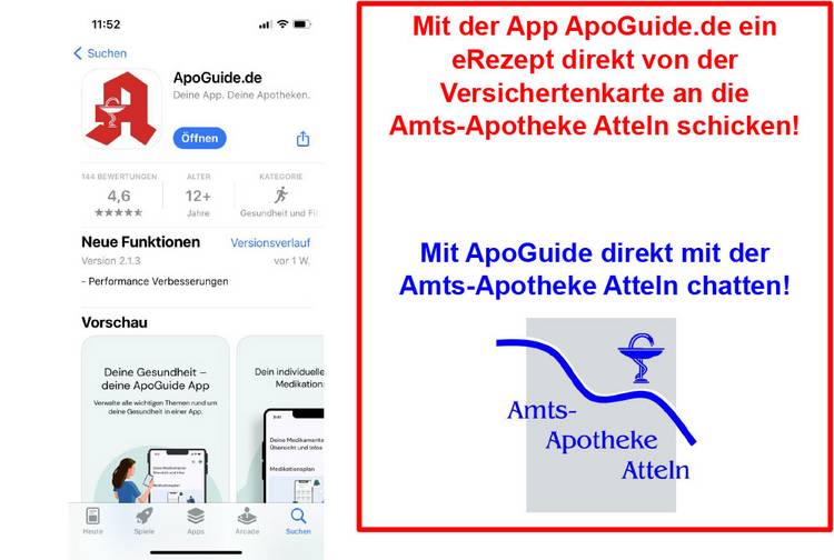 E-Rezepte einlösen mit der ApoGuide-App App-Download bei Google Play App-Download im App Store Anleitung ApoGuide App